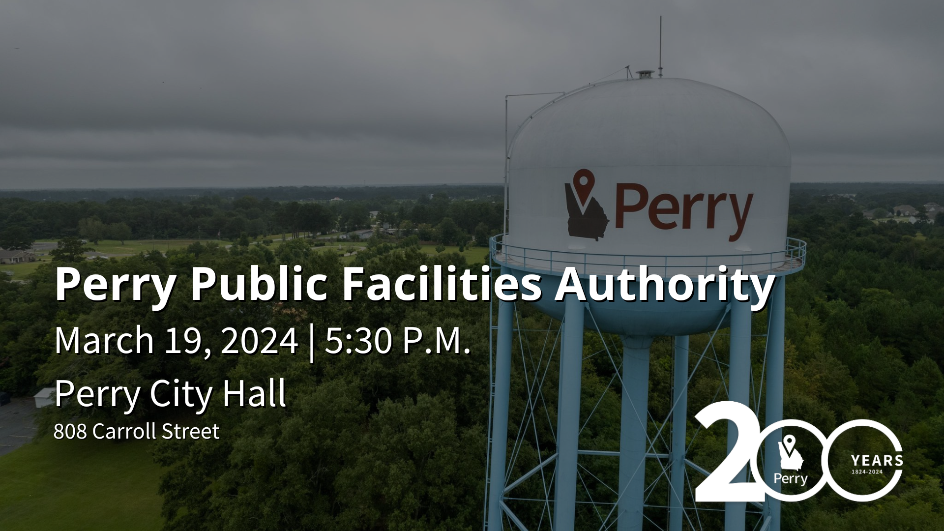 A Special Called Meeting of the Perry Public Facilities Authority will take place on Tuesday, March 19, at 5:30 p.m. at Perry City Hall (808 Carroll Street) in the Council Meeting Room on the 1st floor.