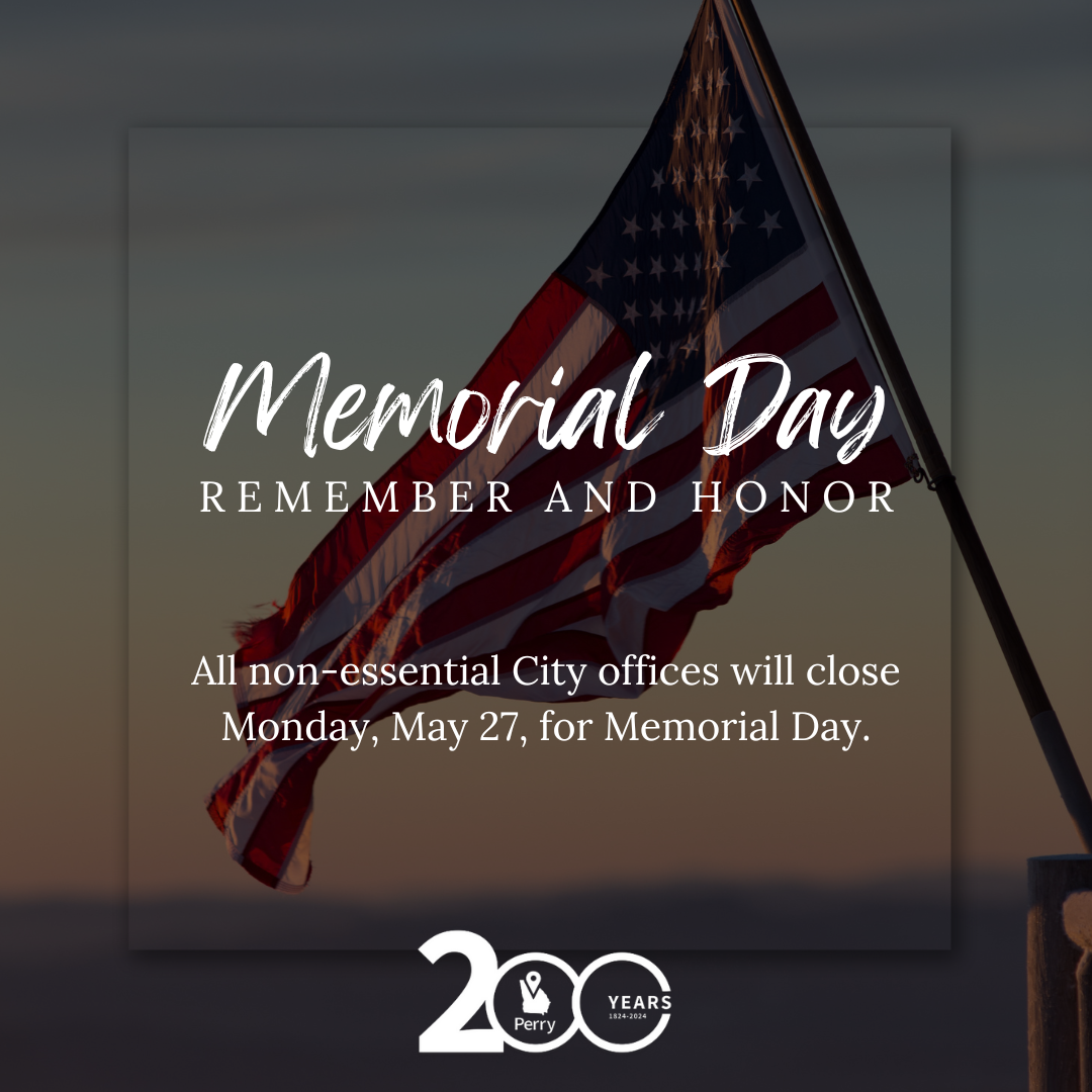 City Hall will be closed on May 27, 2024, for Memorial Day.