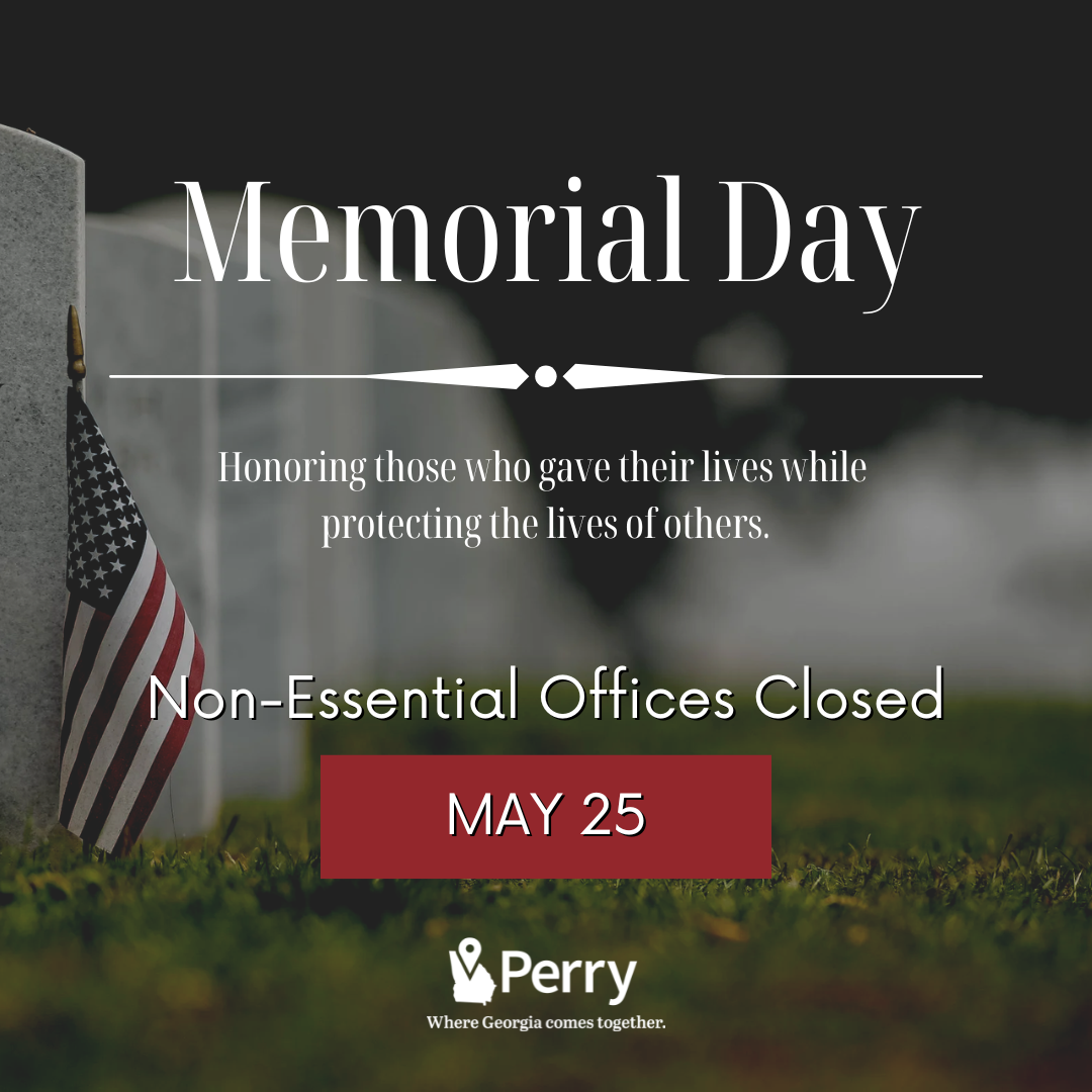 In observance of Memorial Day, all non-essential City of Perry offices will be closed on Monday, May 25.