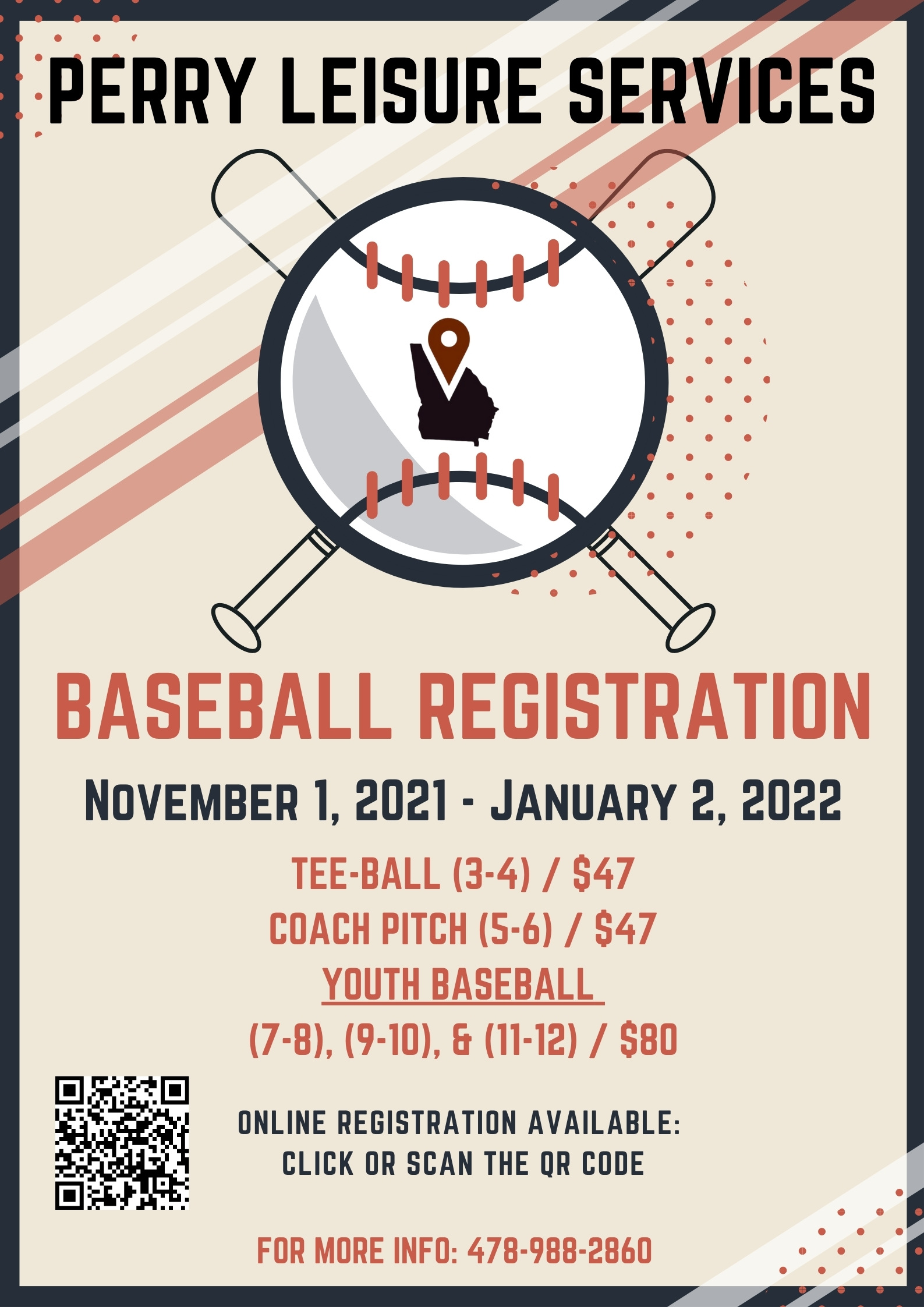 Youth Baseball & Girls Softball Now Registering Through February 2023 Perry Leisure Services is accepting registrations for youth baseball and girls' softball for ages 3 – 12. Register Online Questions? Contact Perry Leisure Services at 478-988-2860. General Information: Perry Leisure Services Leagues serve as an introduction to Baseball and Softball. Our goal is for children to develop fundamental baseball and softball skills. The program plays by the Georgia...