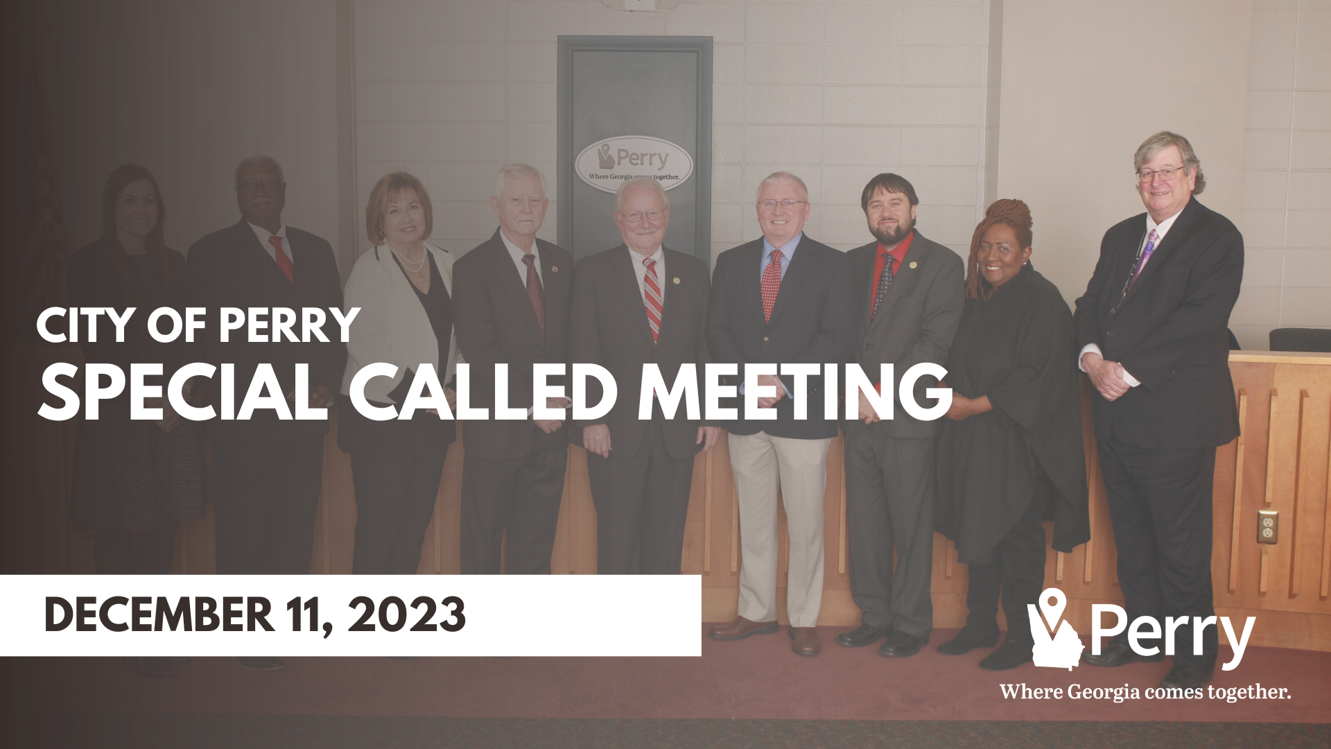 A special called meeting of the Perry City Council will take place on Monday, December 11, at 5:00 p.m. at Perry City Hall (808 Carroll Street) in Council Chambers.
